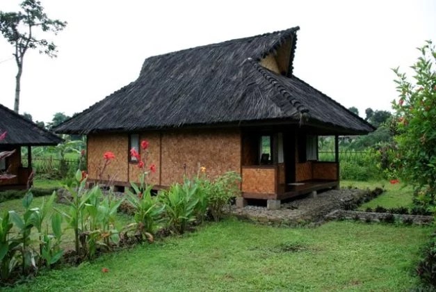 Rumah dalam bahasa sunda adalah imah atau bumi, dalam bahasa indonesia sepadan dengan bumi atau dalam pengertian yang sesungguhnya yaitu dunia. Ketiga kata tersebut termasuk dalam istilah arsitektur atau bahasa r tradisional. Karakter arsitektur sunda yang dibawa ke dalam perancangan arsitektur kontemporer dapat berwujud fisik dan simbolis. Sesuai namanya, rumah adat “badak heuay” memiliki bentuk atap yang nampak seperti . Masyarakat pola dua sangat bergantung pada alam.